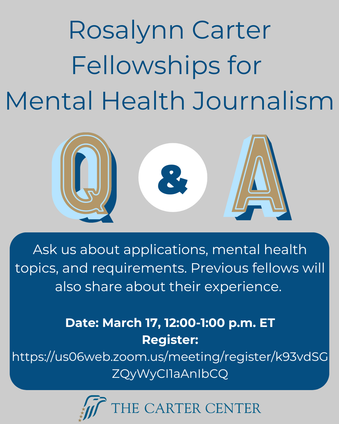 The Carter Center’s Mental Health Journalism Fellows report on some of society’s biggest mental health challenges during their year-long, non-residential fellowship.